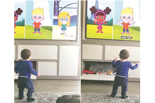 ভিডিওতে দেখা যাচ্ছে একরক্তি মাতেয়ো ঢাউস এক টেলিভিশনের সামনে দাঁড়িয়ে। সেখানে কার্টুন চরিত্ররা নেচে–গেয়ে পড়া শেখাচ্ছে। মানে ওই ‘এ’, ‘বি’, ‘সি’, ‘ডি’। প্রথম ক্লাসেই মাতেয়ো কিন্তু মাত করে দিয়েছে। হুবহু নকল করে ঘুরে ঘুরে নেচেছে সে। কার্টুন চরিত্রগুলোর মতোই নেড়েছে হাত–পা। ছোট্ট মাতেয়োর কাণ্ড দেখে হাসি পেতেই হবে।