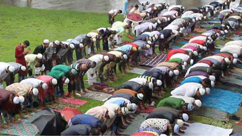 দুর্যোগপূর্ণ আবহাওয়ায় কড়া নিরাপত্তার মধ্য দিয়েই মাঠে গিয়েছেন মুসল্লিরা। এবারের ১৮৯ তম ঈদুল আজহার জামাতে ইমামতি করেন ইসলাহুল মুসলিমিন পরিষদের চেয়ারম্যান মাওলানা ফরিদ উদ্দিন মাসউদ। জামাত শুরু হয় সকাল ৯ টায়।