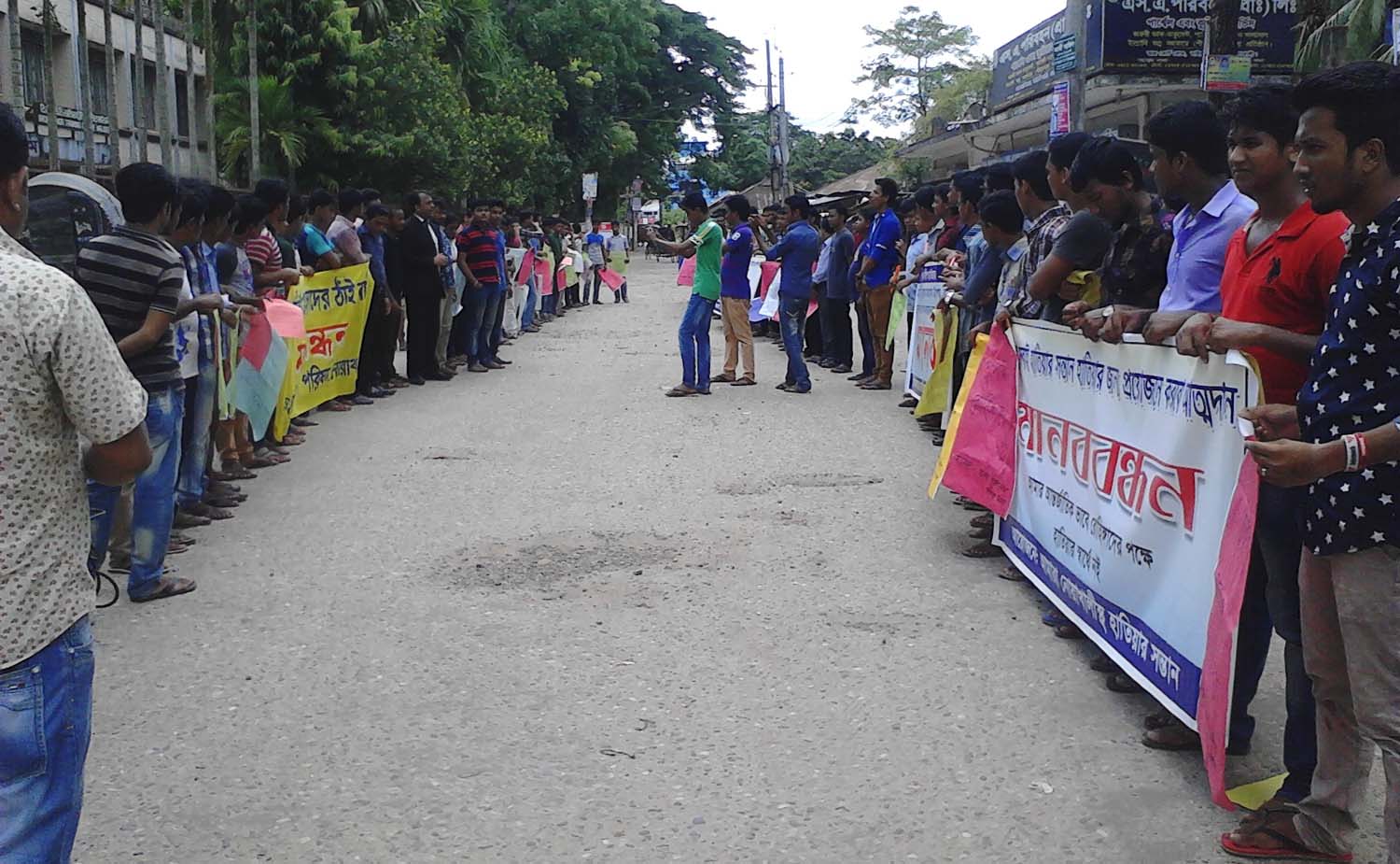 হাতিয়ায় রোহিঙ্গাদের স্থানান্তরের প্রতিবাদে মানববন্ধন
