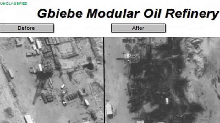 বৃহস্পতিবার মার্কিন প্রতিরক্ষা বিভাগ কর্তৃক প্রকাশিত ছবিগুলোতে জেরিব তেল শোধনাগারে হামলার দৃশ্য ফুটে ওঠে। স্থির ছবিগুলোতে জিবাইবে নামক আরেকটি শোধনাগারে হামলার চিত্র ওঠে আসে।