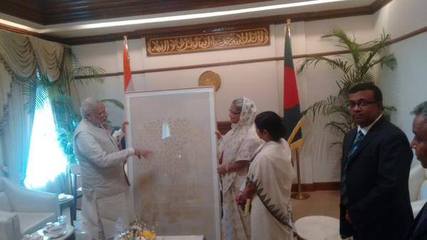প্রধানমন্ত্রীর শেখ হাসিনাকে আকর্ষণীয় একটি ওয়ালম্যাট উপহার দিলেন সফররত ভারতীয় প্রধানমন্ত্রী নরেন্দ্র দামোদরদাস মোদি।