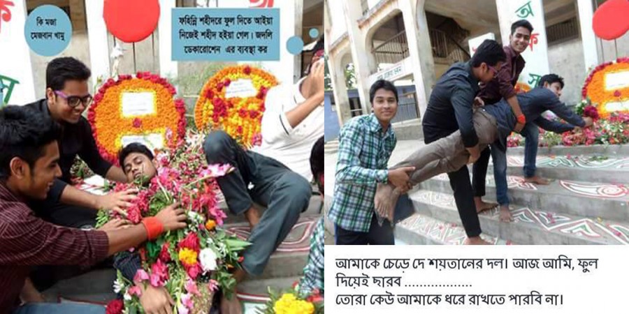 ২১ শে ফেব্রুয়ারি আমাদের অর্জনের দিন। জীবনের বিনিময়ে, রক্তের বিনিময়ে আমরা অর্জন করেছি মাতৃভাষার অধিকার। এখন যা আন্তর্জাতিক মাতৃভাষা দিবস। এই দিনটি একটি স্নিগ্ধ, শালীন, শান্ত দিন। যে দিনটিতে আমরা শুধু ভালবাসা দিব শদীদদের প্রতি, যে দিনে আমরা প্রতিজ্ঞ করব মাতৃভাষা রক্ষার, মাতৃভাষার প্রসার ও দেশপ্রেমের শপথ নিব। এ দিনে ‘কুল’ ‘ডুড’ প্রজন্মের এমন আহাম্মকি আচরন অগ্রহনযোগ্য। দুঃখের বিষয় হল এই আহাম্মক আবালদের পরিমান বাড়ছে দিন দিন। এস.এম সাইফুর রহমান-এর ফেসবুক স্ট্যাটাস থেকে নেওয়া