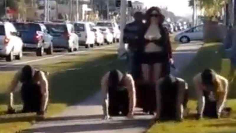 ধারণা করা হচ্ছে এই সেই নারী। পোষা কুকুরের মতোই তার রয়েছে চার পুরুষ। এরা আক্ষরিক অর্থেই কুকুরের মতো আচরণ করে। ভিডিওর শেষ অংশে দেখা যায়, এই চার যুবক কুকুরের মতোই খেলছে।