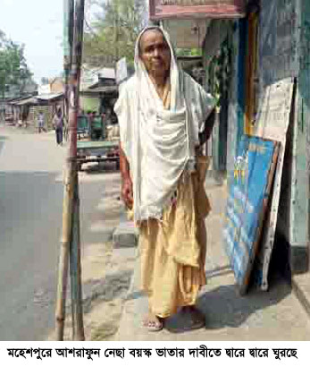 দেশ স্বাধীনের সময় বৃদ্ধা আশরাফুন নেছার (৮০) স্বামী মারা যায়। সেই থেকে পরের বাড়িতে কাজ করে খায়। কিন্তু বিধির বিধান আজও বয়স্ক ভাতা জোটেনি আশরাফুন নেছার কপালে। শনিবার সকালে মহেশপুর