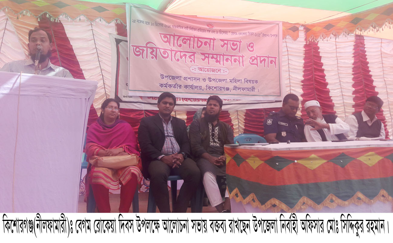 সারাদেশের ন্যায় নীলফামারী জেলার কিশোরগঞ্জ উপজেলায় বেগম রোকেয়া দিবস পালন করেছে উপজেলা প্রশাসন ও উপজেলা মহিলা উন্নয়ন দপ্তর। সকালে উপজেলায় বিভিন্ন সামাজিক সংস্থার উদ্যোগে বেগম রোকেয়া দিবসকে সফল করার লক্ষ্যে