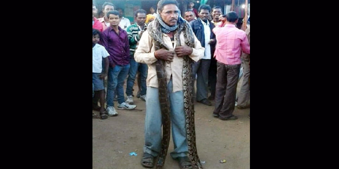 মদের নেশায় গলায় অজগর নিয়ে গ্রাম ঘুরলেন ধনেশ্বর