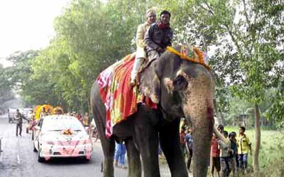 মায়ের ইচ্ছে পূরণে রাজকুমারের সাজে হাতির পিঠে চড়ে বিয়ে!