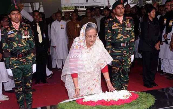 বঙ্গবন্ধুর প্রতিকৃতিতে প্রধানমন্ত্রীর শ্রদ্ধা