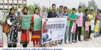 তনু হত্যাকারীদের গ্রেফতার দাবিতে নোয়াখালীতে শিক্ষার্থীদের মানববন্ধন