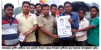 কলারোয়ায় যুবলীগ প্রার্থীদের মধ্যে হ্যান্ডবিল বিতরণ