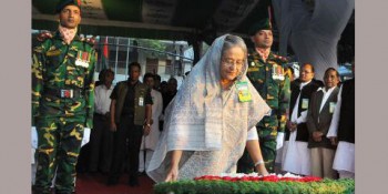 বঙ্গবন্ধুর প্রতিকৃতিতে প্রধানমন্ত্রীর শ্রদ্ধা