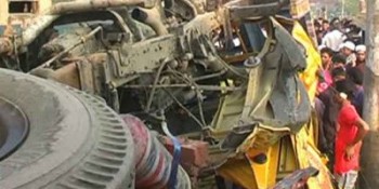 ময়মনসিংহে ট্রেন ও ট্রাকের সংঘর্ষের পর ঢাকা-ময়মনসিংহ রেলপথে ট্রেন চলাচল বন্ধ রয়েছে। ঢাকা-ময়মনসিংহ মহাসড়কের কেওয়াটখালী রেলক্রসিংয়ে সোমবার সকাল ৬টার দিকে ট্রেন ও ট্রাকের সংঘর্ষ হয়। এতে দুজন আহত হয়েছেন। দুর্ঘটনার