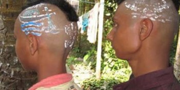 মাথায় নৌকা এঁকে নির্বাচনী প্রচার