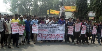মৌলভীবাজারে শিক্ষক লাঞ্ছিত হওয়ার ঘটনার প্রতিবাদে উত্তাল শহর