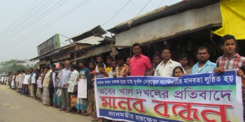 নোয়াখালী খাল দখল করে বাণিজ্যিক ভবন নির্মাণের প্রতিবাদে মানববন্ধন