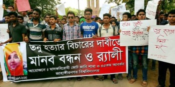 তনু হত্যা বিচারের দাবিতে বিক্ষোভ ও মানববন্ধন