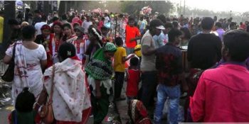 চিলমারী বন্দরে ব্রহ্মপুত্রের নদের পাড়ে লাখো পূণ্যার্থীর ঢল