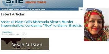 বাংলাদেশে একের পর এক গুপ্তহত্যার দায় স্বীকার করলেও, এবার চট্টগ্রামে পুলিশ সুপার বাবুল আক্তারের স্ত্রী মাহমুদা আক্তার মিতু হত্যার নিন্দা জানিয়েছে আল-কায়েদা ভারতীয় উপমহাদেশ (একিউআইএস) শাখা। খবরটি প্রকাশ করেছে যুক্তরাষ্ট্র