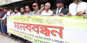 মাগুরায় নবগঙ্গা নদী বাচাতে জাগো মাগুরার মানববন্ধন-সমাবেশ