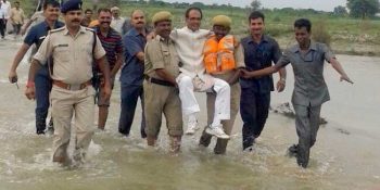 পুলিশের কোলে চড়ে বন্যা পরিদর্শনে মুখ্যমন্ত্রী (ভিডিও)