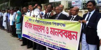 মাগুরায় জেলা আইনজীবিদের জঙ্গীবাদ ও সন্ত্রাসবাদ বিরোধী মানববন্ধন