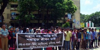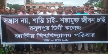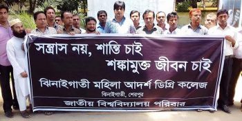 কলারোয়ায় সন্ত্রাস, গুপ্তহত্যা ও জঙ্গিবাদের বিরুদ্ধে শিক্ষক-শিক্ষার্থীদের মানববন্ধন