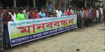মনপুরায় দাবী আদায়ের লক্ষে মৎস্যজীবীদের মানব বন্ধন ও সমাবেশ