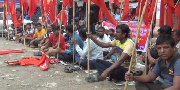 আশুলিয়ায় তৈরি পোশাক কারখানার শ্রমিকরা অবস্থান কর্মসূচি