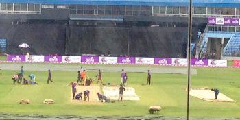 টানা তিন দিন ধরেই বৃষ্টি হয়ে চলছে চট্টগ্রামে। তবে আশার কথা বুধবার দফায় দফায় বৃষ্টি আসলেও দুপুরের পর থেমেছে। তাই খেলা হওয়ার সম্ভবনা সৃষ্টি হয়েছে। উইকেটের কভার সরিয়ে মাঠ শুকানোর