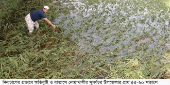 নোয়াখালীতে টানা বৃষ্টি ও বাতাসে রোপাআমন নুয়ে পড়ে পানিতে নিমজ্জিত