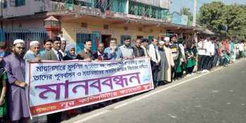 মিয়ানমারে মুসলিম রোহিঙ্গা গণহত্যার প্রতিবাদে নোয়াখালীতে শিক্ষক-শিক্ষার্থীদের মানববন্ধন