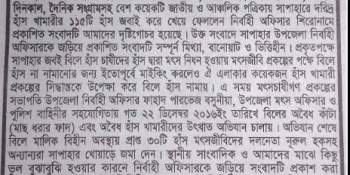 নওগাঁর সাপাহার উপজেলার ‘দরিদ্র খামারীর ১১৫ হাঁস জবাই করে খেলেন নির্বাহী অফিসার!‘ এই শিরোনামে সম্প্রতি বিভিন্ন জাতীয় দৈনিক ও অনলাইনে একটি সংবাদ প্রকাশ হয়। সংবাদটির তীব্র প্রতিবাদ জানিয়েছেন সাপাহারের নির্বাহী