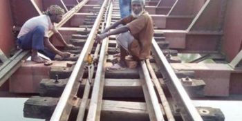 রেলের স্লিপারের স্থানচ্যুতি ঠেকাতে বাঁশ