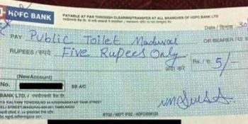ভদ্রলোকের টয়লেট যাওয়ার বেগ পেয়েছিল বেশ। কিন্তু পকেটে খুচরা টাকা ছিল না। ছিল এইচডিএফসি ব্যাংকের চেক। কী আর করবেন, পাবলিক টয়লেট ব্যবহার করে বিল পরিশোধে পাঁচ টাকার চেক কেটে দিলেন