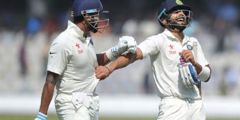 দারুণ সব নান্দনিক শট খেলে আগের দিনই তুলে নিয়েছিলেন সেঞ্চুরি। আর দ্বিতীয় দিনের শুরুতেই ওয়ানডে মেজাজে খেলে সেটাকে ১৫০ এ নিয়ে গেলেন কোহলি। নিজের অর্ধশতও তুলে নিলেন রাহানে। দুইজনের দুর্দান্ত