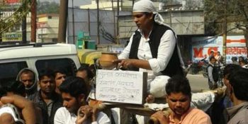কার্যালয় শ্মশানে, খাটিয়ায় চড়ে ভোট প্রচারে প্রার্থী!
