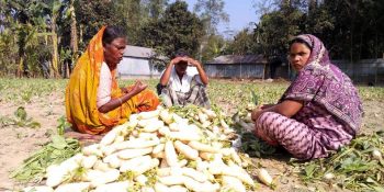 লালমনিরহাট: জেলায় নামমাত্র দামে বিক্রি হচ্ছে মূলা। মাত্র এক মণ মূলা বিক্রি করে মিলছে এক কেজি চাল। কিছু দিন আগে প্রতি মণ মূলা ১০০-১২০ টাকা দামে বিক্রি হলেও কয়েক দিন