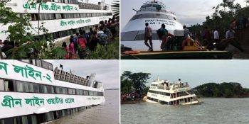 মাঝ নদীতে দুর্ঘটনায় গ্রিনলাইন, প্রাণে বাঁচল দুইশ যাত্রী