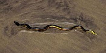 ক্যালিফোর্নিয়ার শীতল জলে দেখা মিললো বিরল প্রজাতির সাপের। এর কালো দেহে অদ্ভুত সুন্দর হলুদের ছোঁয়া। বিজ্ঞানীরা জানান, এটা মারাত্মক বিষাক্ত এক সাপ। এক প্রতিবেদনে সাপটির কথা তুলে ধরেছে ন্যাশনাল জিওগ্রাফি।