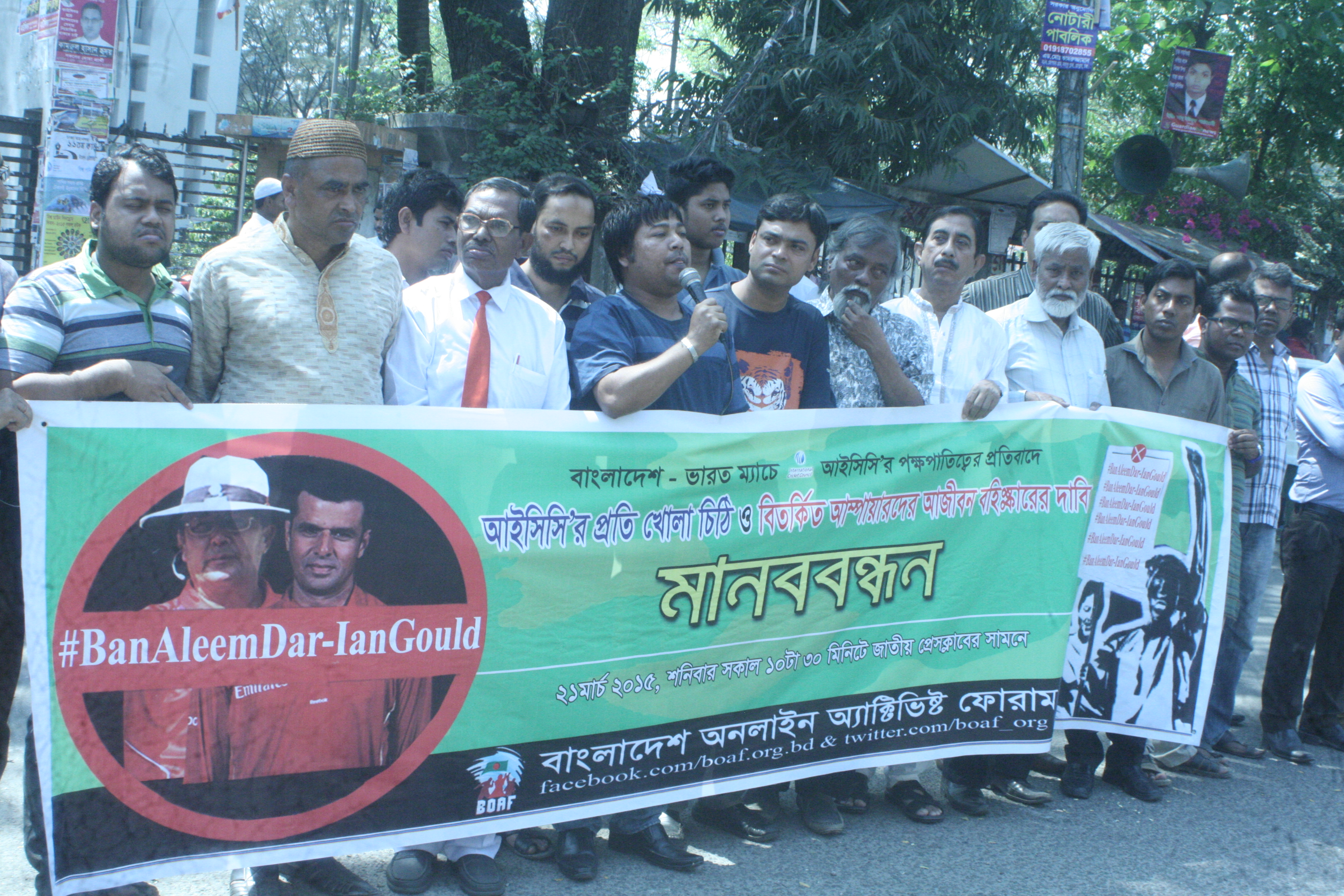 আইসিসি ক্রিকেট বিশ্বকাপ-২০১৫ অষ্ট্রেলিয়ার মেলবোর্নে অনুষ্ঠিত বাংলাদেশ বনাম ভারত কোয়াটার-ফাইনাল ম্যাচে আম্পায়ারদের বিতর্কিত ও ভারতপ্রীতি সিন্ধান্তের প্রতিবাদে বিতর্কিত আম্পায়ারদের আজীবন বহিঃষ্কারের দাবি জানান বাংলাদেশ অনলাইন অ্যাক্টিভিষ্ট ফোরাম-বোয়াফ। অদ্য সকাল সাড়েবিস্তারিত