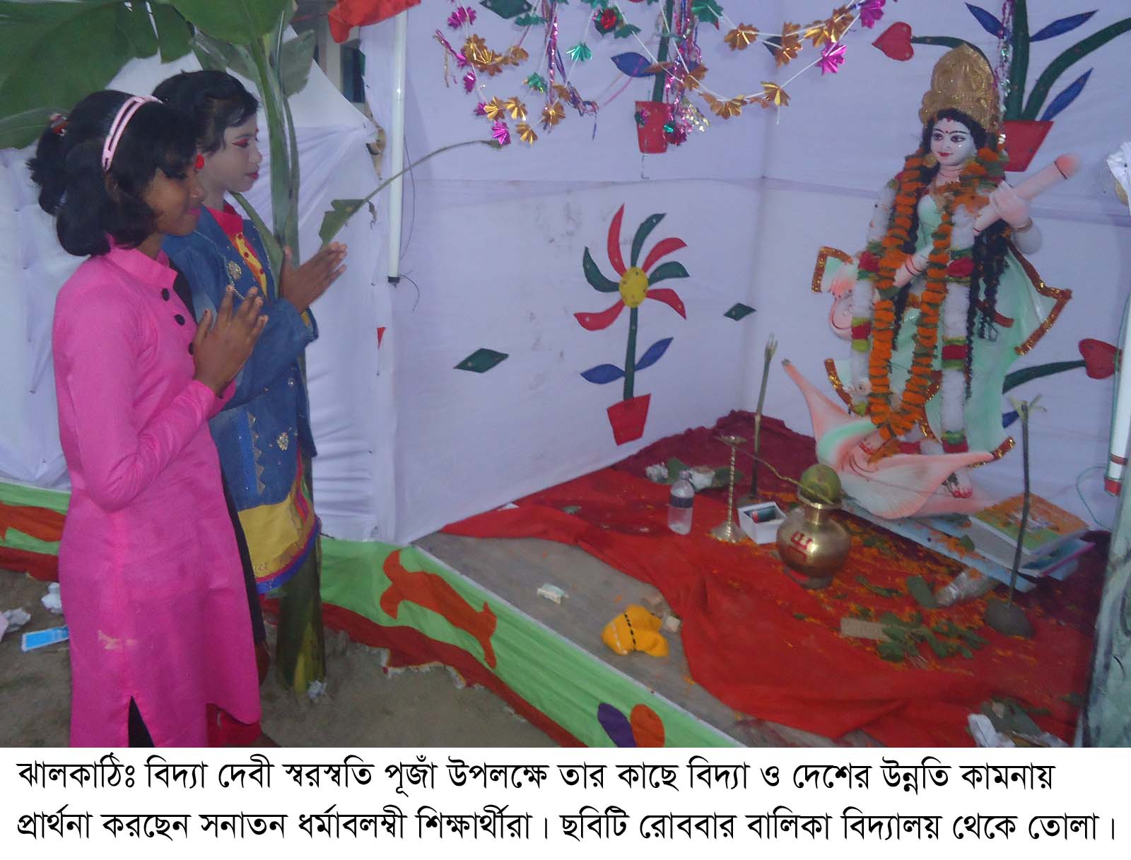 ঝালকাঠিতে সনাতন ধর্মাবলম্বীদের বিদ্যার দেবী সরস্বতী পূজা পালিত