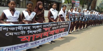 তনু হত্যাকারীদের গ্রেফতার দাবিতে নোয়াখালীতে শিক্ষার্থীদের মানববন্ধন