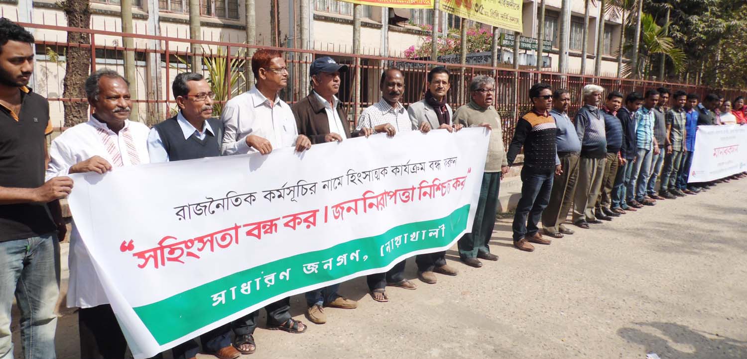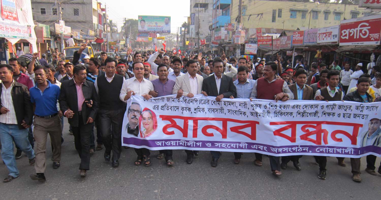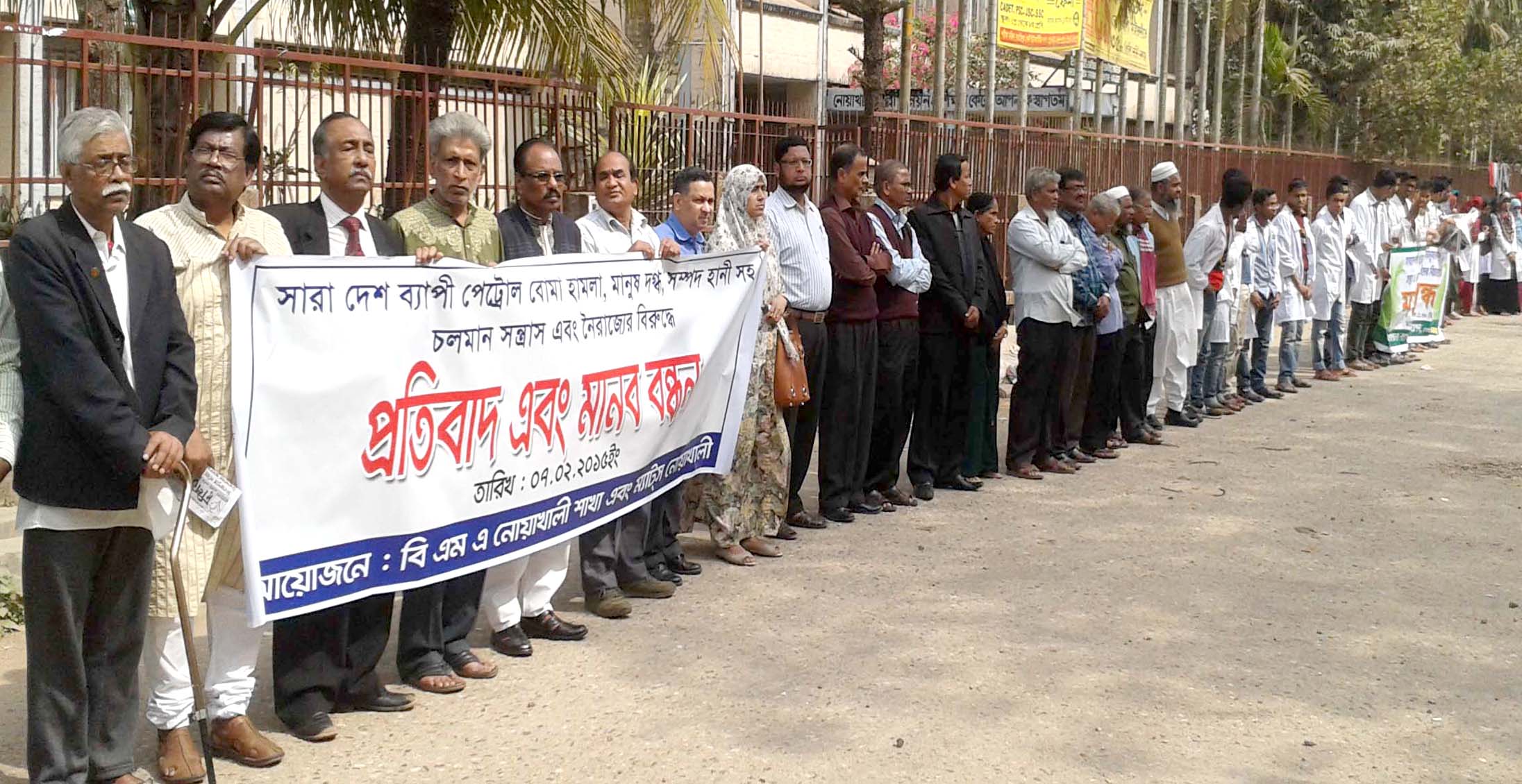 নোয়াখালীতে সহিংসতা বন্ধ ও জননিরাপত্তার দাবিতে মানববন্ধন