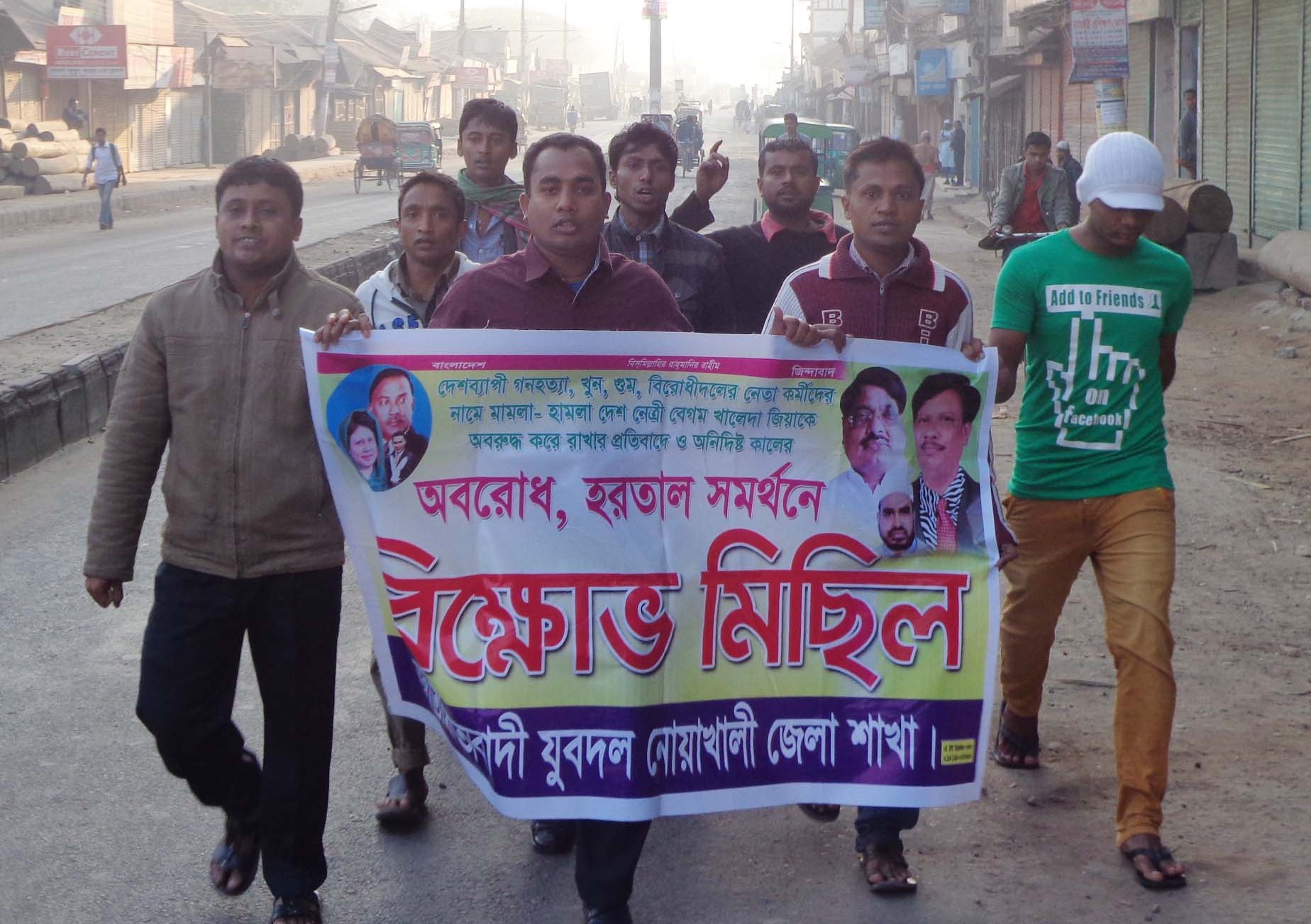 মানুষ পুড়িয়ে মারার প্রতিবাদে নোয়াখালীতে জাতীয় যুবজোটের মানববন্ধন সমাবেশ
