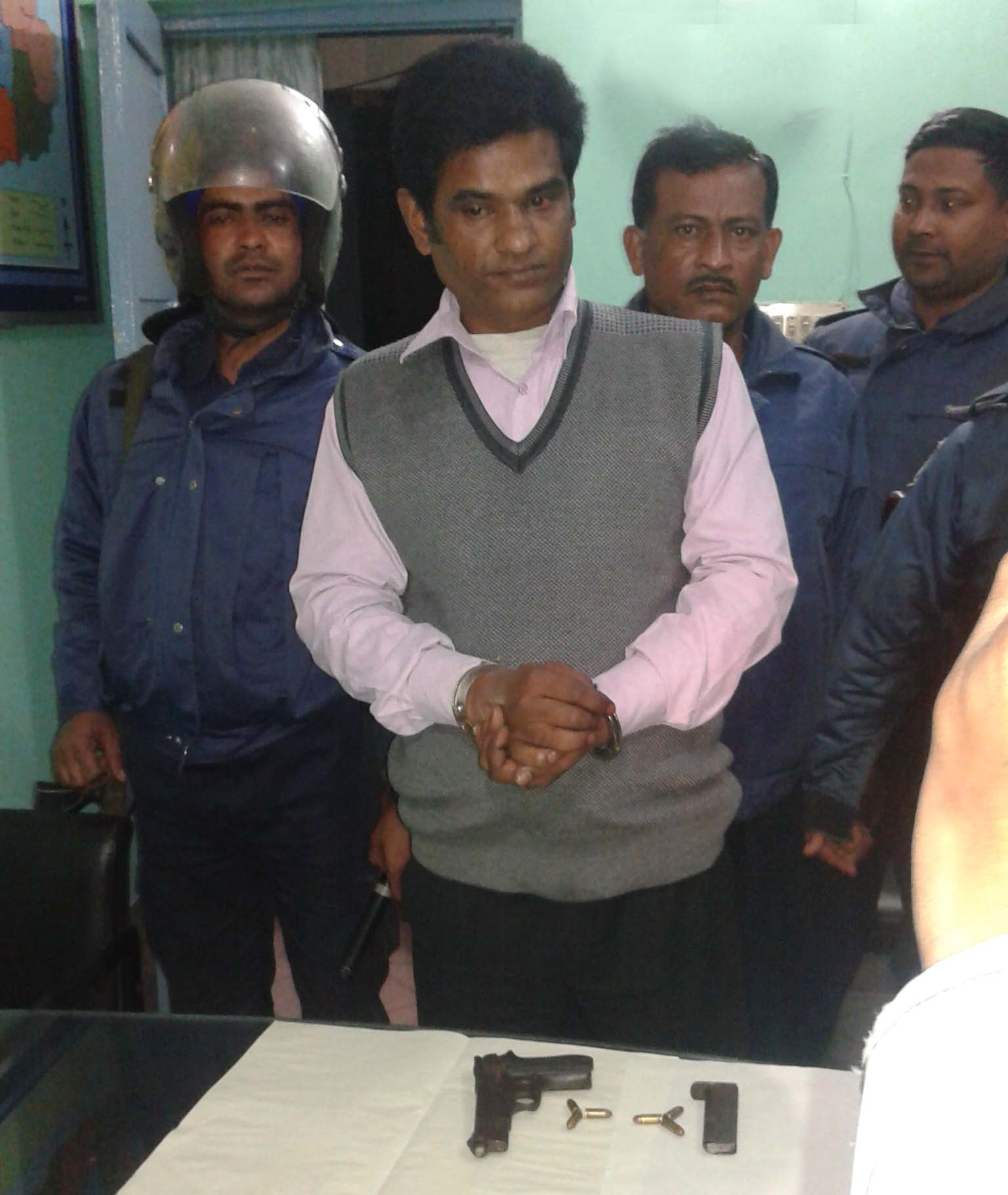 বেগমগঞ্জ মডেল থানার উপ পুলিশ পরিদর্শক জসিম উদ্দিনের নেতৃত্বে বিদেশী পিস্তল ও ছয় রাউন্ড গুলিসহ গ্রেফাতর-১