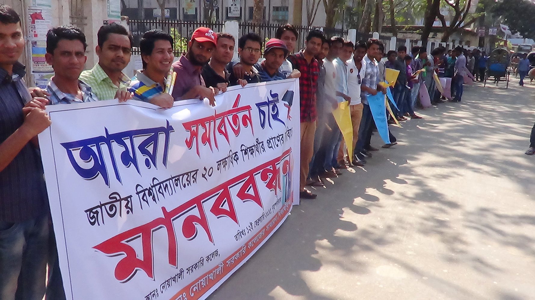 জাতীয় বিশ্ববিদ্যালয়ের সমাবর্তনের দাবিতে নোয়াখালীতে মানববন্ধন