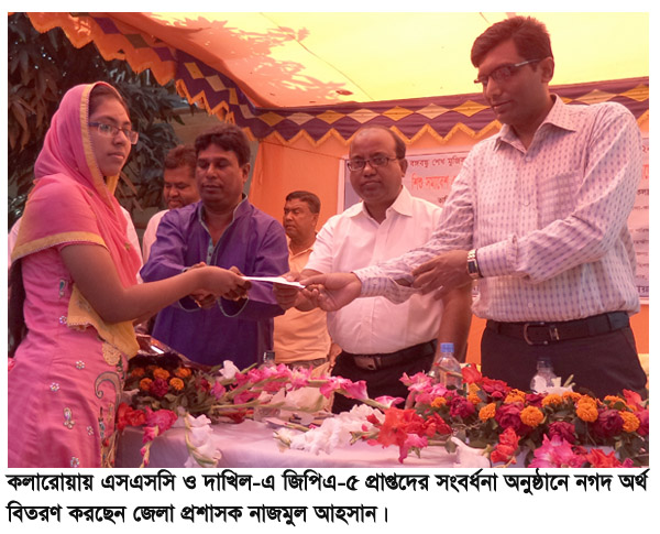 এসকে রায়হান, তালা প্রতিনিধিঃ বৃহষ্পতিবার সারাদেশে এসএসসি ও সমমানের পরীক্ষা’২০১৭ ফল প্রকাশের পর তালা উপজেলার শ্রীমন্তকাটীস্থ ’জাগরণ’ ক্লাবের উদ্দ্যোগে এসএসসি ও সমমানের পরীক্ষার্থীদের ফলাফল পেতে সহায়তা কার্য্ক্রম পরিচালনা করা হয় । ক্লাবের তথ্য ও প্রযুক্তি বিষয়ক সম্পাদক আব্দুল হাকিমের নেতৃত্বে এ কার্য্ক্রম পরিচালনা করা হয় ।এ সময় উপস্থিত ছিলেন ক্লাবের উপদেষ্টা পরিষদের সদস্য জনাব হারুনার রশিদ মিন্টু , সহ-সভাপতি জনাব ওয়ালিদ হোসেন , সাধারণ সম্পাদক মনিরুজ্জাম মনি , কোষাধ্যক্ষ রাহুল মোড়ল , দপ্তর সম্পাদক ইমরান হোসেন , সাংস্কৃতিক বিষয়ক সম্পাদক শামীম হোসেন এবং কার্যকরী সদস্য শফিকুল ইসলাম সহ ক্লাবের অন্যান্য সদস্য বৃন্দ। এ কার্য্ক্রমে আওতায় এসএসসি ও সমমানের পরীক্ষার্থীদের ফল প্রকাশেবিস্তারিত