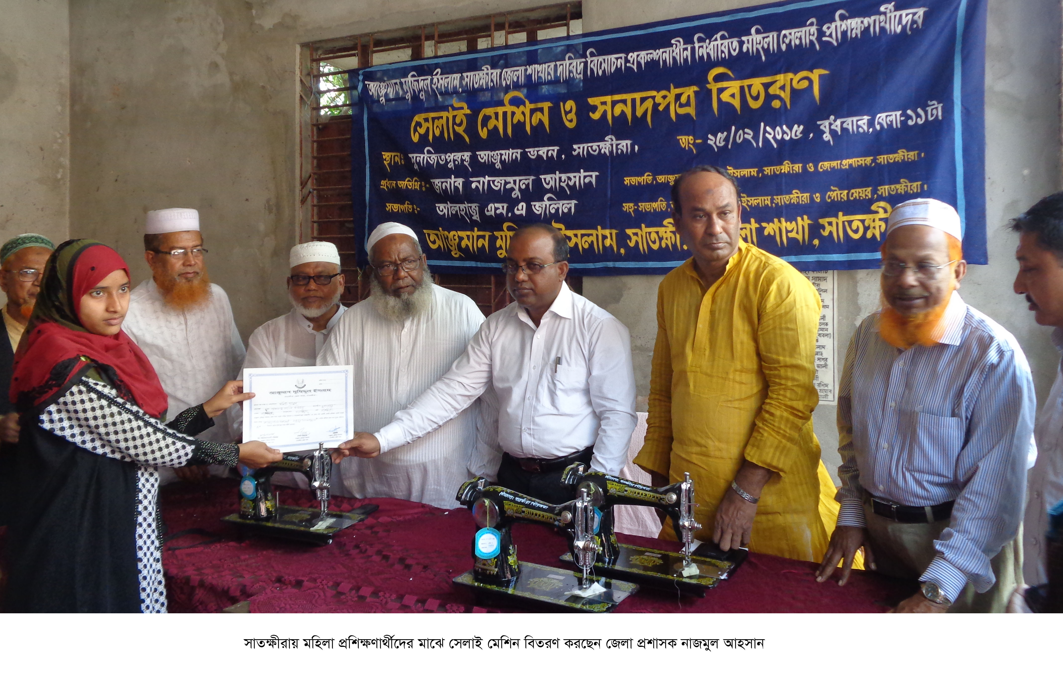 আঞ্জুমান মফিদুল ইসলাম ও সাতক্ষীরা পৌরসভা কর্তৃক সেলাই মেশিন ও সনদপত্র বিতরণ