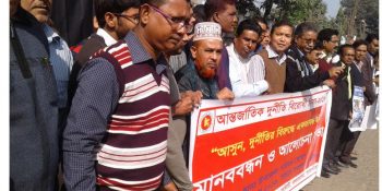 কলারোয়ায় ইউপি চেয়ারম্যান গ্রেপ্তারের প্রতিবাদে সমাবেশ ও মানববন্ধন