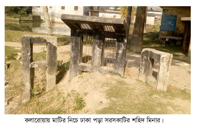 কলারোয়ার সরসকাটির শহিদ মিনারটি ঢাকা পড়েছে মাটির নিচে